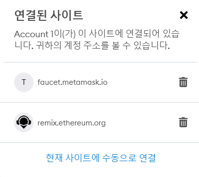 메타마스크 - 우측 상단 땡땡땡(설정) 클릭 - 연결된 사이트 - "현재 사이트에 수동으로 연결" 클릭