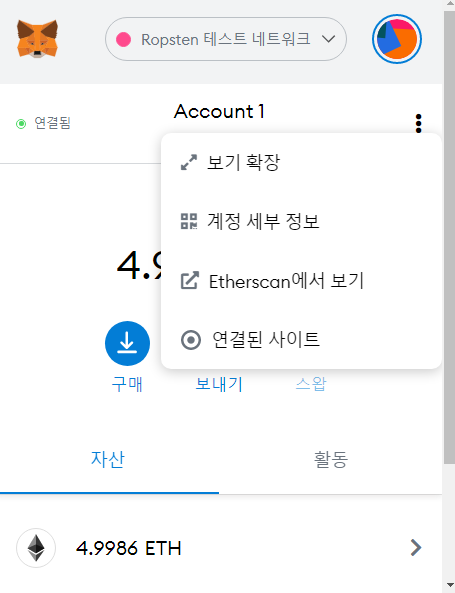 테스트넷환경 'Ropsten'에서