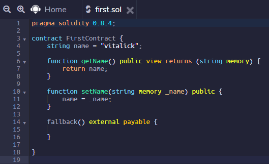 - getName 호출시 "vitalick" 반환. view는 볼 수 만 있다는 뜻 임.